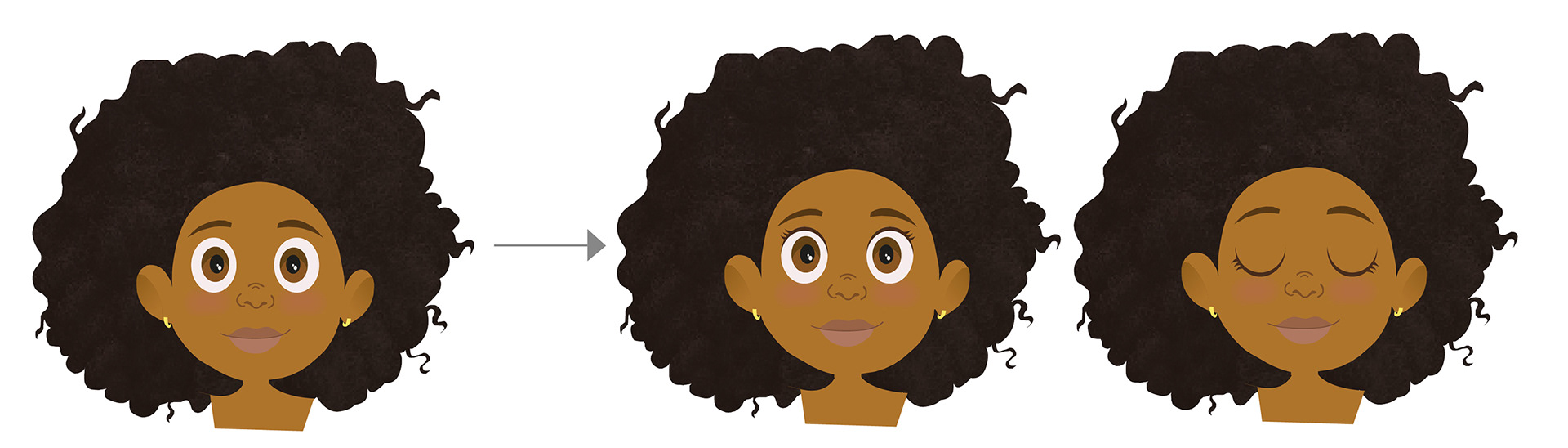 When it came to creating our character, me and Harriet both agreed on creating 3 different ages for the same character as our motion graphics symbolised her journey into adult hood and loving her hair. We also wanted to show how even the youngest girls get discriminated against and create an emotional response from our viewers. Harriet created the initial drawings for our character using Procreate. I then developed these drawings on Abobe Illustrator. I added more depth and texture onto the illustrations and got rid of the harsh dark outlines to make them seem more real.