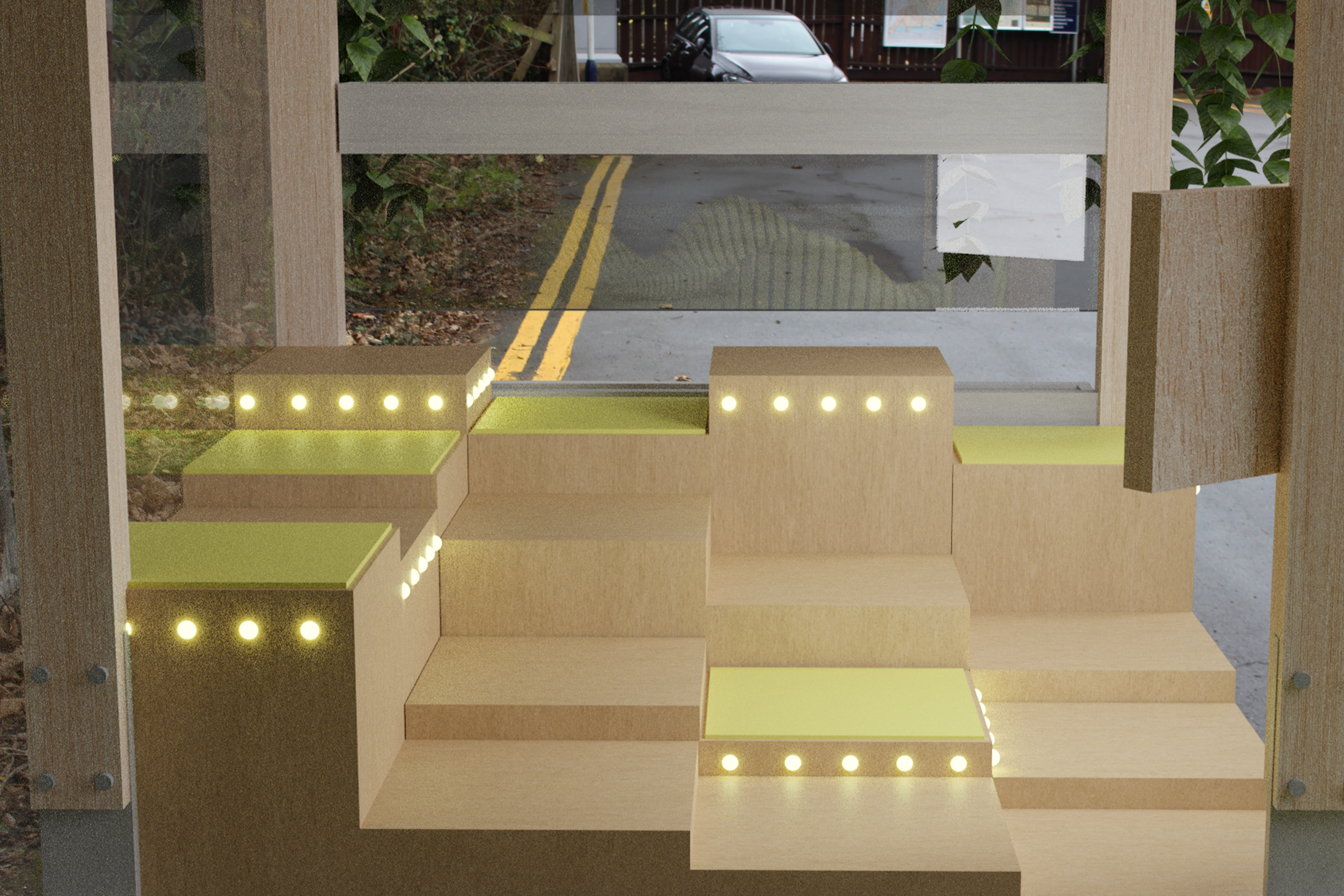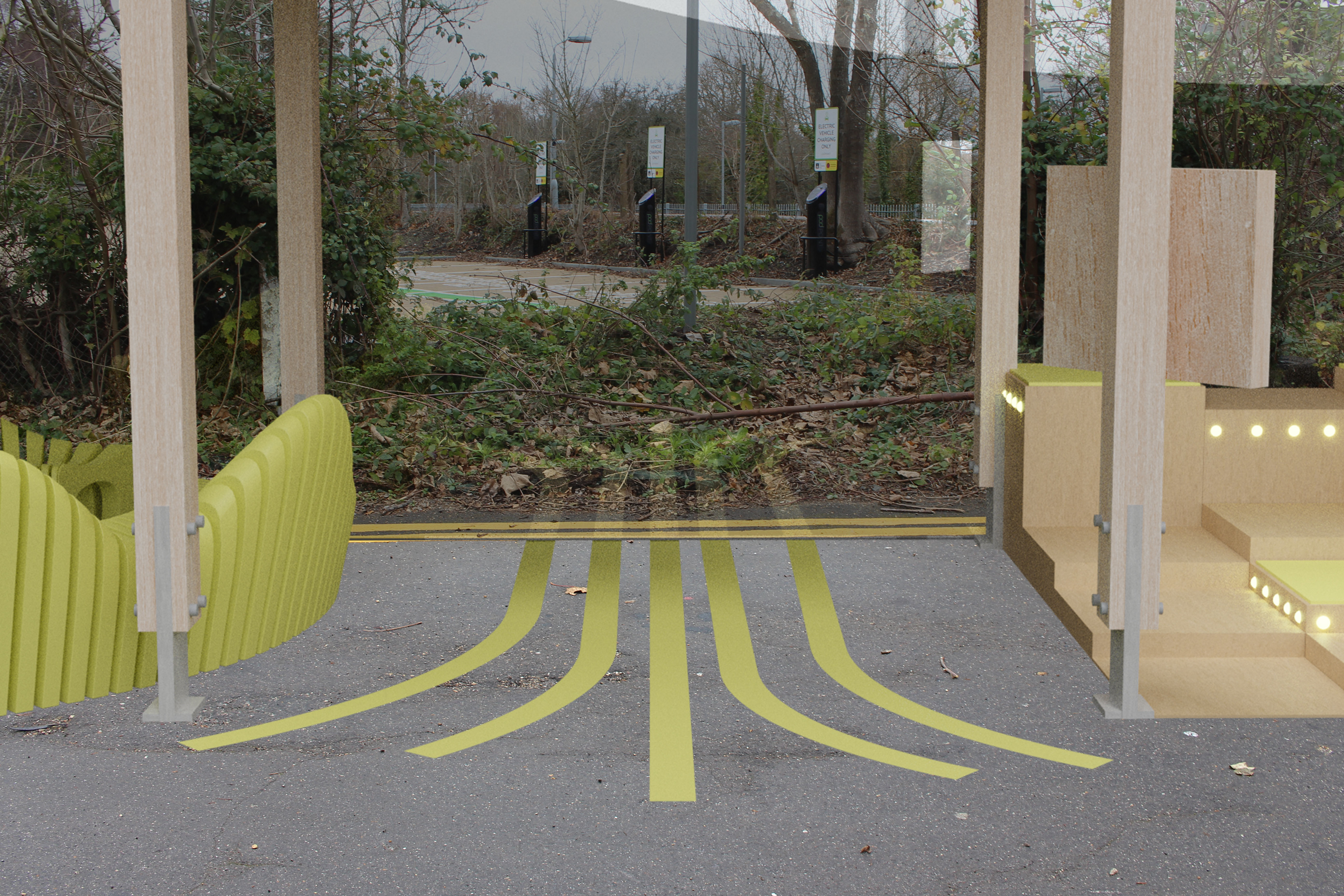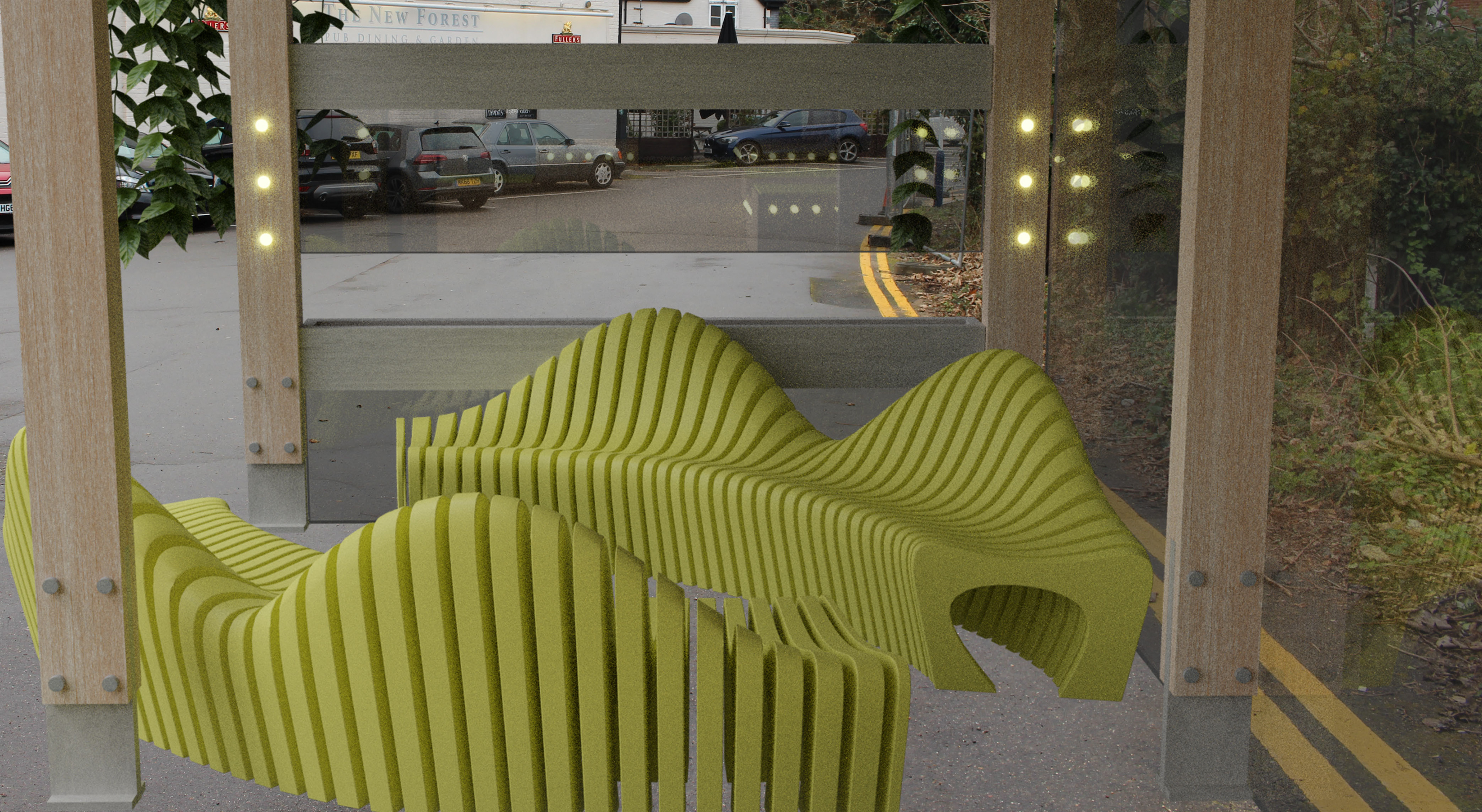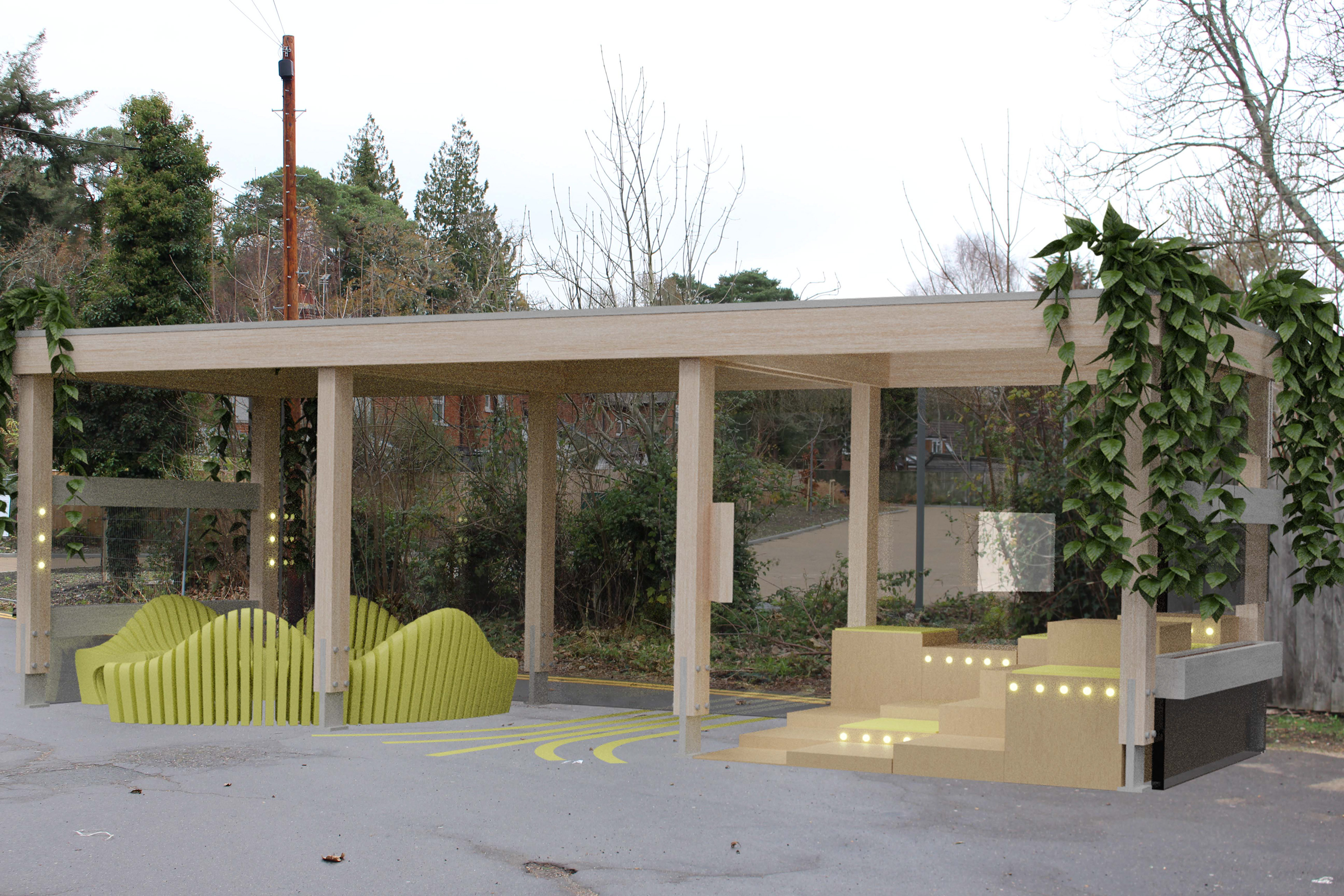 Situated in the car park, consisting of 3 modular units as provided, COM’s proposed mission is to create conversation and evoke positivity in the local community. This is a unit not just for commuters but for the whole community of Ashurst. Subverting what they would usually associate with waiting for a train by creating this conversation starter.